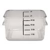 The Rubbermaid® Commercial SpaceSaver Food Storage Container keeps food fresh, organized, and ready-to-use. Featuring easy-to-read graduated measurements in blue for liters and red for quarts, these plastic food storage containers make it easy to measure contents. Because we believe the best food storage containers use space efficiently, we've designed these plastic containers with a square shape that offers 25% more storage capacity than round containers. Constructed of break-resistant polycarbonate, they have a temperature range of -40°F to 212°F making them perfect for everything from freezer storage to sous vide cooking. Commercial dishwasher safe, they feature durable handles with drain holes for proper washing and drying. USDA-certified for food contact, it assists in complying with HACCP guidelines and is NSF 3-A Meat and Poultry Equipment and NSF 2-certified.